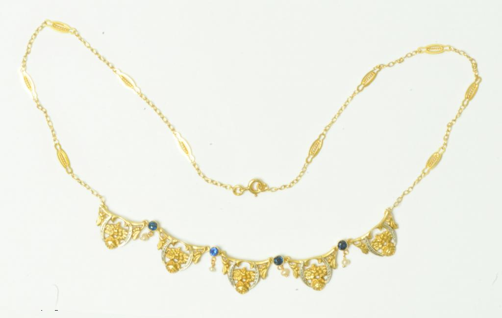 19th Century Draperie Necklace – Gold, Sapphires and Pearls