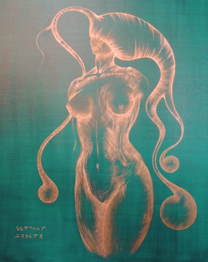 Oil and copper on canvas, by romanian Bitcoin-Friendly artist Stefania Nistoreanu. 50 x 70cm